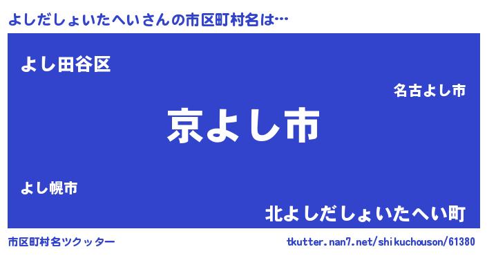 | 意味不明あだ名 | 『住所不定無職よしだしょいたへい(59歳)』 |