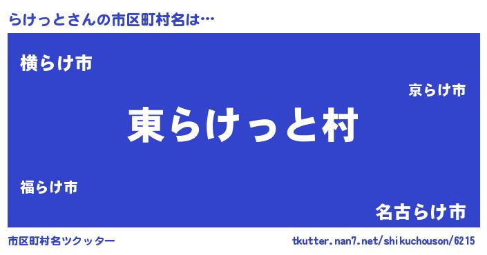 | 男性向けラノベタイトル風あだ名 | 『らけっとの憂鬱』『魔弾の王とらけっと』 |
