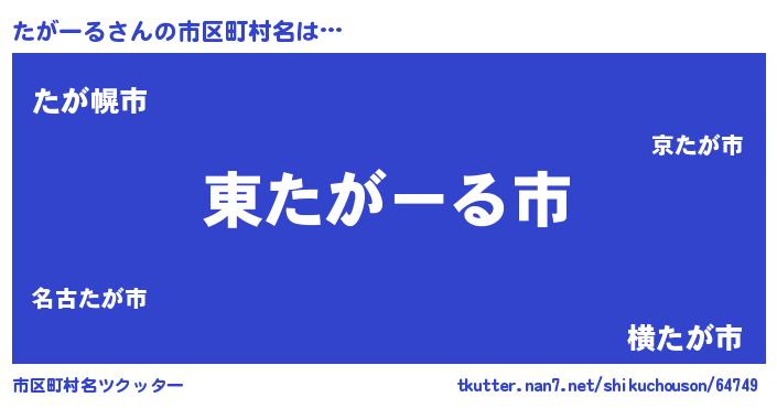 | 男性向けラノベタイトル風あだ名 | 『たがーるの憂鬱』『魔弾の王とたがーる』 |