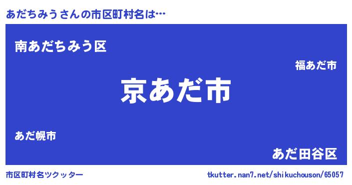 | 女子向けラノベタイトル風あだ名 | 『乙女ゲームの破滅フラグしかない悪役あだちみうに転生してしまった…』 |