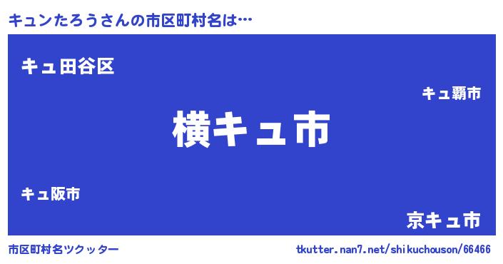 | 男性向けラノベタイトル風あだ名 | 『Re:キュンたろうから始める異世界生活』 |