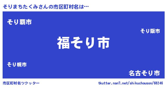 | 男性向けラノベタイトル風あだ名 | 『転生したらそりまちたくみだった件』 |