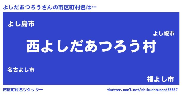 | 女子向けラノベタイトル風あだ名 | 『よしだあつろう姫と円卓の騎士』 |
