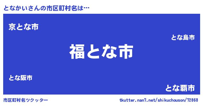 | 男性向けラノベタイトル風あだ名 | 『となかい~年齢イコール彼女いない歴の魔法使い~』 |