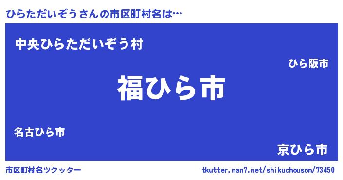 | 男性向けラノベタイトル風あだ名 | 『ひらただいぞう~年齢イコール彼女いない歴の魔法使い~』 |