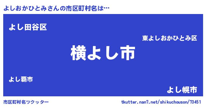 | 男性向けラノベタイトル風あだ名 | 『Re:よしおかひとみから始める異世界生活』 |