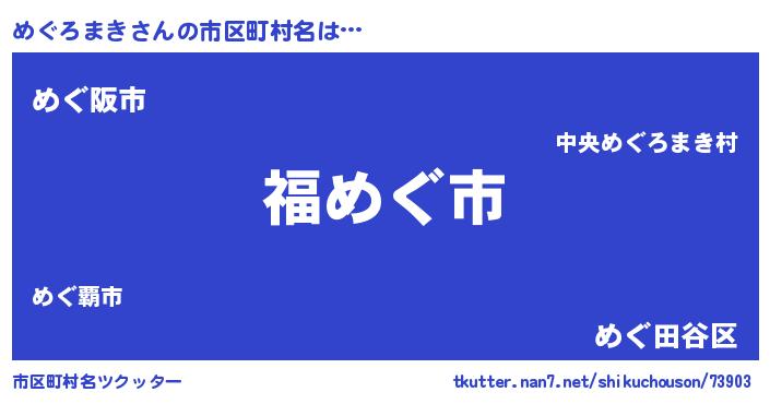 | 男性向けラノベタイトル風あだ名 | 『めぐろまき~年齢イコール彼女いない歴の魔法使い~』 |