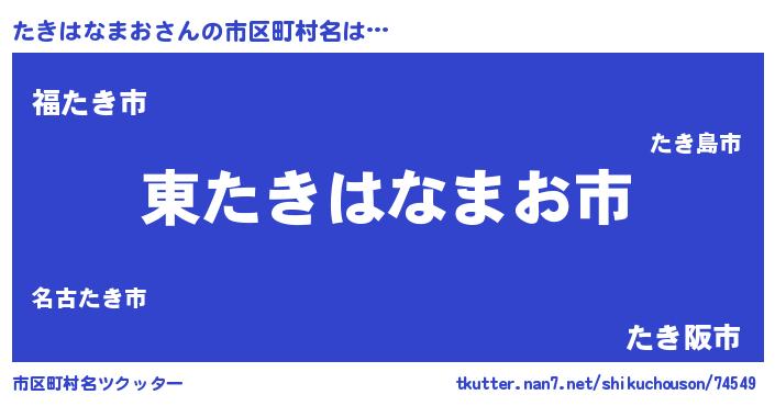| 男性向けラノベタイトル風あだ名 | 『たきはなまおの憂鬱』 |