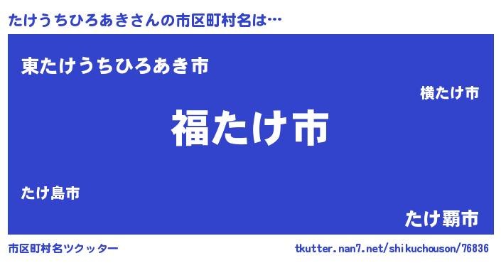 | 男性向けラノベタイトル風あだ名 | 『たけうちひろあき~年齢イコール彼女いない歴の魔法使い~』 |