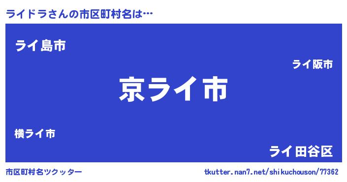 | 男性向けラノベタイトル風あだ名 | 『この素晴らしい世界にライドラを!』 |