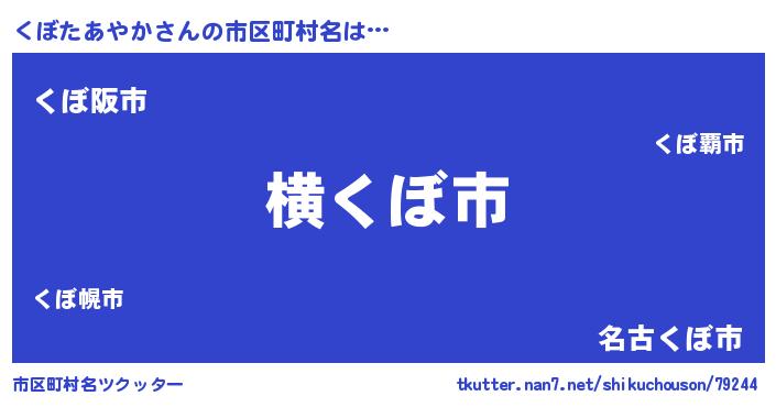 | 男性向けラノベタイトル風あだ名 | 『Re:くぼたあやかから始める異世界生活』 |
