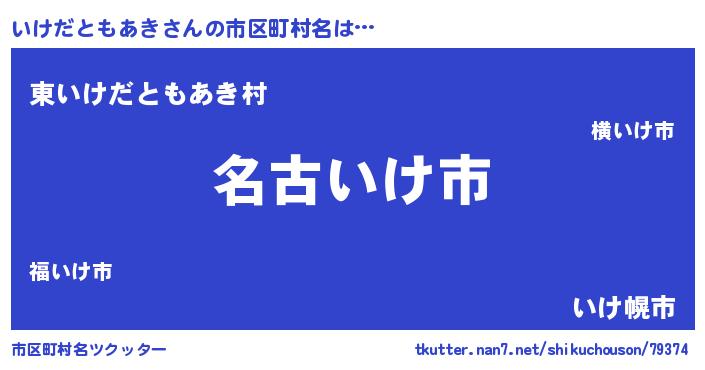 | 男性向けラノベタイトル風あだ名 | 『いけだともあきに滅ぼされるだけの簡単なお仕事です』 |