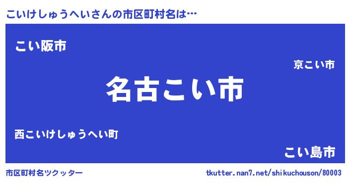| 男性向けラノベタイトル風あだ名 | 『こいけしゅうへいに滅ぼされるだけの簡単なお仕事です』 |