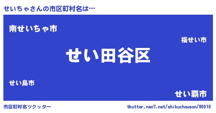 | 男性向けラノベタイトル風あだ名 | 『うちのせいちゃが世界を掌握している!』 |