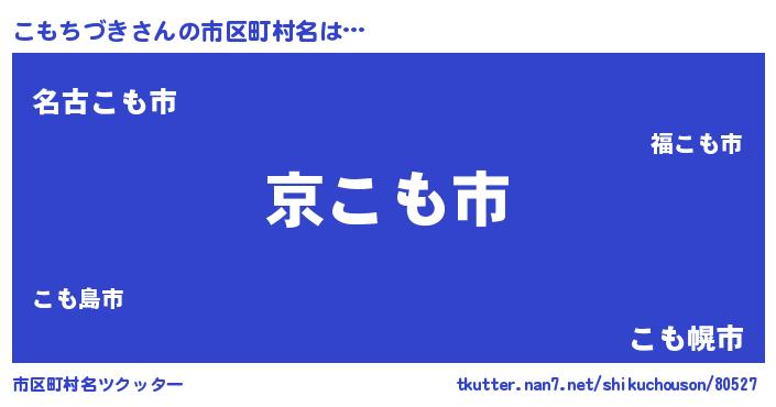 こもちづきさんの市区町村名は… 『京こも市』『名古こも市』『こも幌市』 ツクッター #市区町村名ツクッター http://tkutter.nan7.net/shikuchouson/80527/