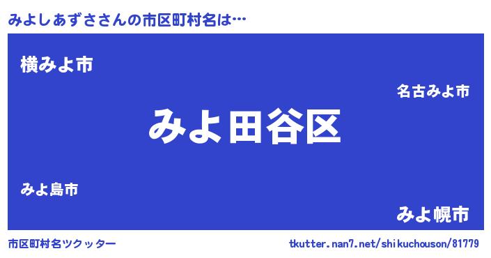 | 欧米人風あだ名 | 『みよしあずさ・ステッグマイヤー』 |