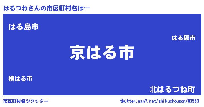 | 男性向けラノベタイトル風あだ名 | 『この素晴らしい世界にはるつねを!』 |