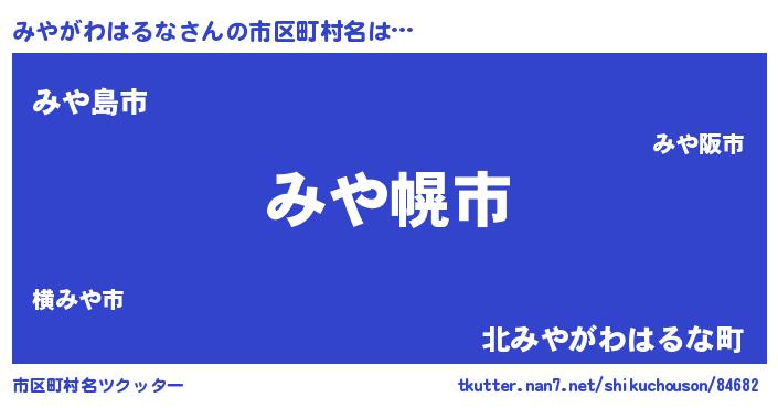 | 男性向けラノベタイトル風あだ名 | 『やはりみやがわはるなの青春ラブコメはまちがっている 』 |
