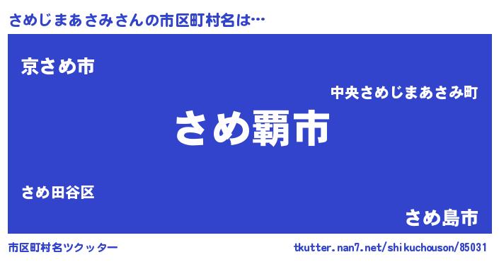 | 意味不明あだ名 | 『永久保存さめじまあさみ』 |