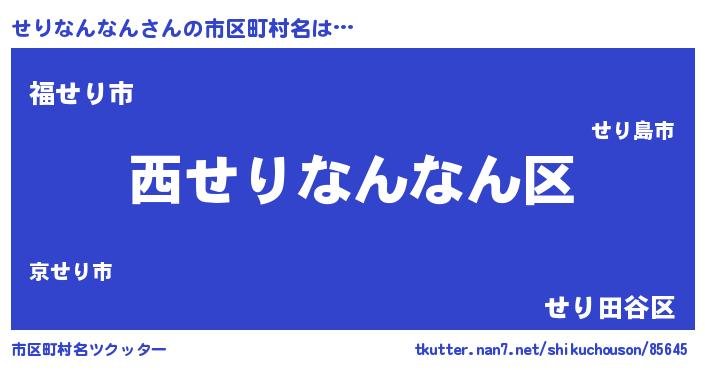 | 男性向けラノベタイトル風あだ名 | 『せりなんなんの憂鬱』 |