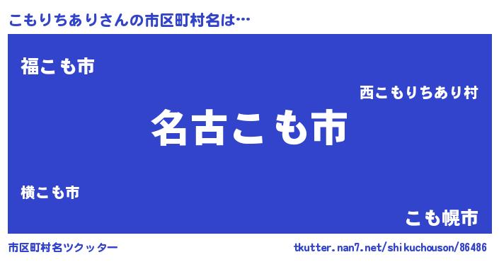 | 男性向けラノベタイトル風あだ名 | 『はたらくこもりちありさま!』 |