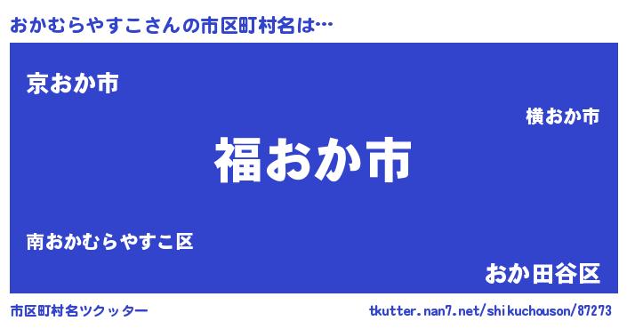 | 男性向けラノベタイトル風あだ名 | 『おかむらやすこ~年齢イコール彼女いない歴の魔法使い~』 |