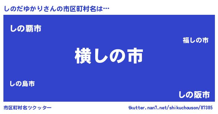 | 男性向けラノベタイトル風あだ名 | 『Re:しのだゆかりから始める異世界生活』 |