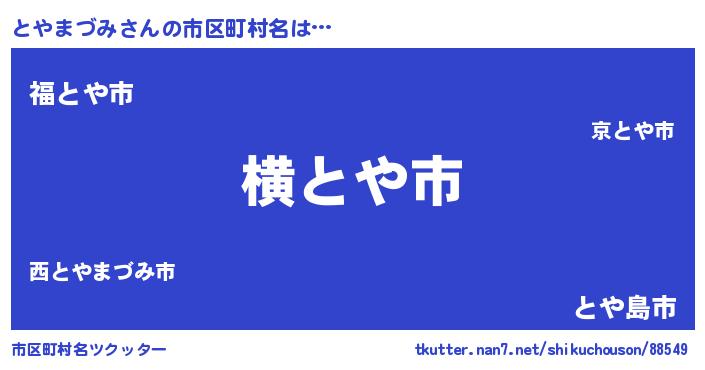 | ヘコむあだ名 | 『とやっふぃ~』『とやまづみ(震え声)』 |