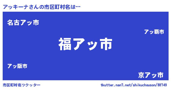 | 男性向けラノベタイトル風あだ名 | 『アッキーナ~年齢イコール彼女いない歴の魔法使い~』 |
