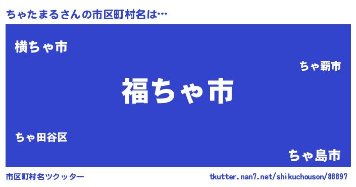 | 男性向けラノベタイトル風あだ名 | 『ちゃたまる~年齢イコール彼女いない歴の魔法使い~』 |