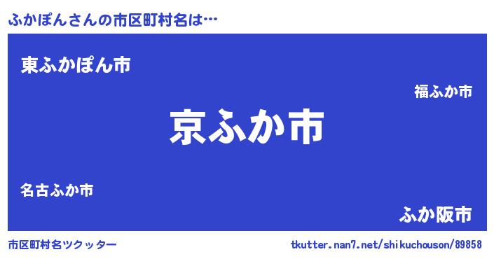 | 男性向けラノベタイトル風あだ名 | 『魔弾の王とふかぽん』『ふかぽんの憂鬱』 |