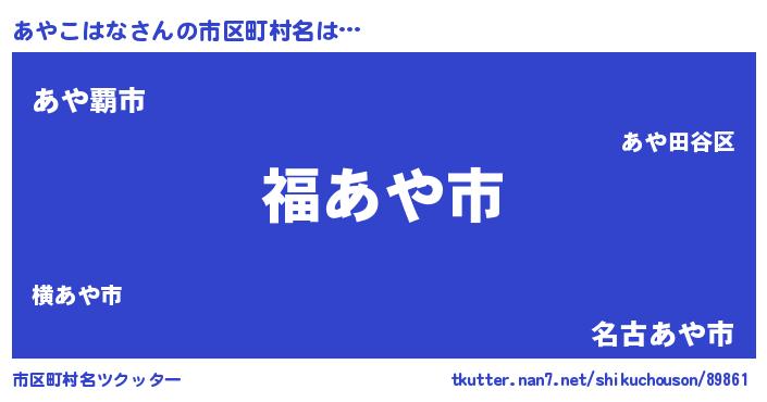 | 男性向けラノベタイトル風あだ名 | 『あやこはな~年齢イコール彼女いない歴の魔法使い~』 |