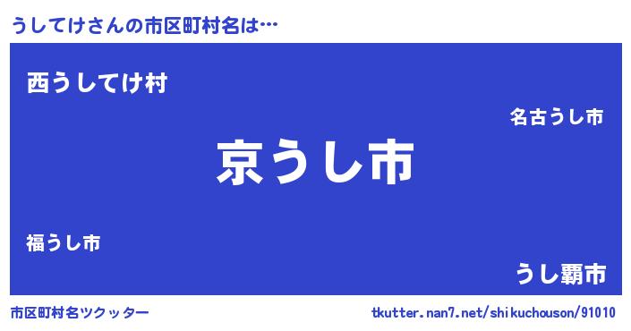 | 男性向けラノベタイトル風あだ名 | 『魔弾の王とうしてけ』『うしてけの憂鬱』 |