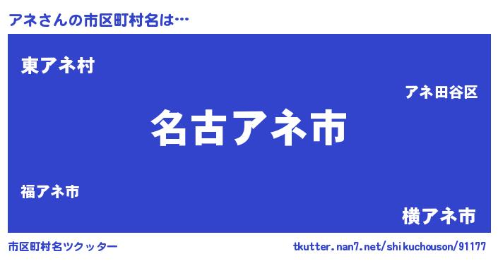 | 可愛いあだ名 | 『アんアん』『アネうちぇる』 |