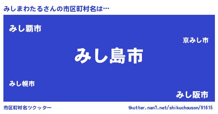 | 男性向けラノベタイトル風あだ名 | 『ノーゲーム・ノーミシマワタル』 |