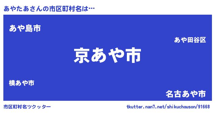 | 意味不明あだ名 | 『住所不定無職あやたあ(84歳)』 |