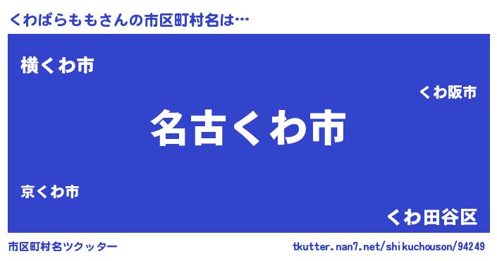 | 意味不明あだ名 | 『自称くわばらもも』 |