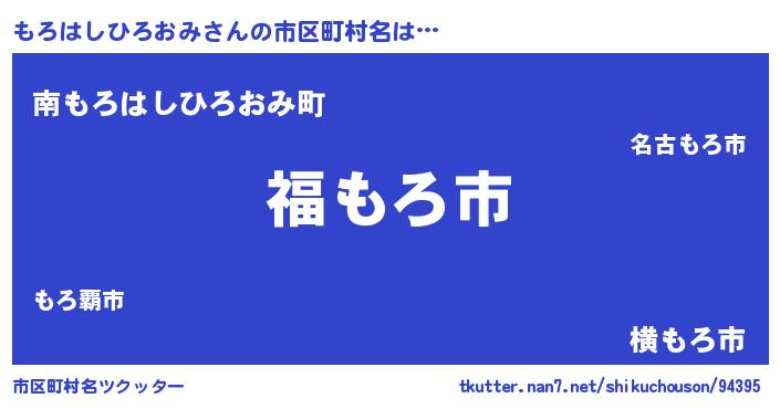 | 男性向けラノベタイトル風あだ名 | 『もろはしひろおみ~年齢イコール彼女いない歴の魔法使い~』 |