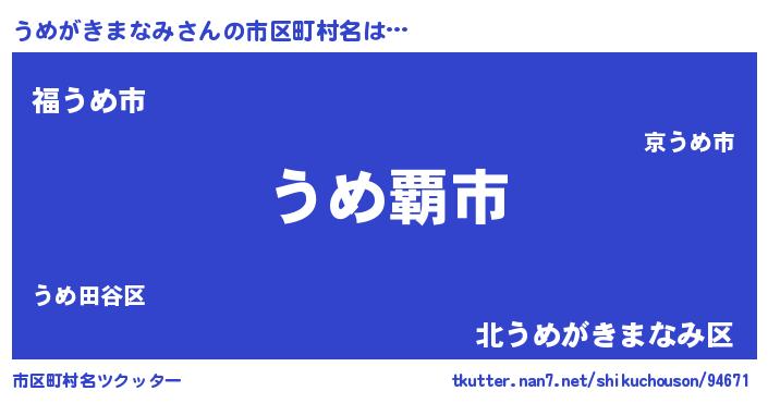 | 女子向けラノベタイトル風あだ名 | 『うめがきまなみの契約王妃』 |