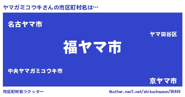 | 男性向けラノベタイトル風あだ名 | 『ヤマガミコウキ~年齢イコール彼女いない歴の魔法使い~』 |