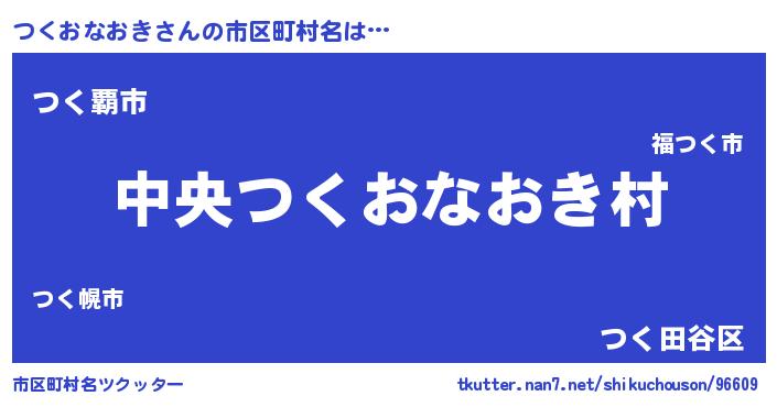 つくおなおきさんの市区町村名は… 『中央つくおなおき村』『つく覇市』『つく田谷区』 ツクッター #市区町村名ツクッター http://tkutter.nan7.net/shikuchouson/96609/