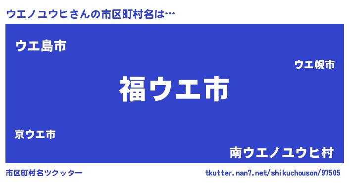 | 男性向けラノベタイトル風あだ名 | 『ウエノユウヒ~年齢イコール彼女いない歴の魔法使い~』 |