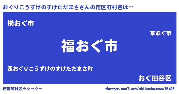 | 男性向けラノベタイトル風あだ名 | 『おぐりこうずけのすけただまさ~年齢イコール彼女いない歴の魔法使い~』 |