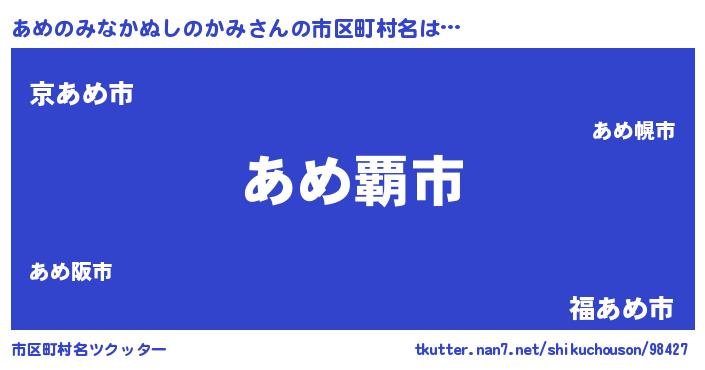 | 意味不明あだ名 | 『永久保存あめのみなかぬしのかみ』 |