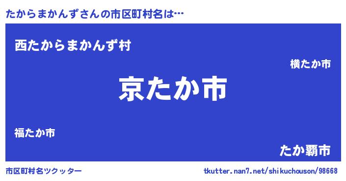 | 意味不明あだ名 | 『住所不定無職たからまかんず(85歳)』 |