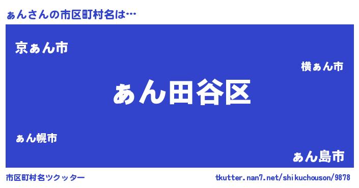 | 意味不明あだ名 | 『住所不定無職ぁん(85歳)』『自称ぁん』 |