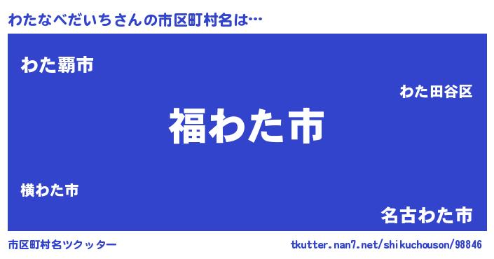 | 男性向けラノベタイトル風あだ名 | 『転生したらわたなべだいちだった件』 |