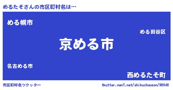 | 男性向けラノベタイトル風あだ名 | 『この素晴らしい世界にめるたそを!』 |