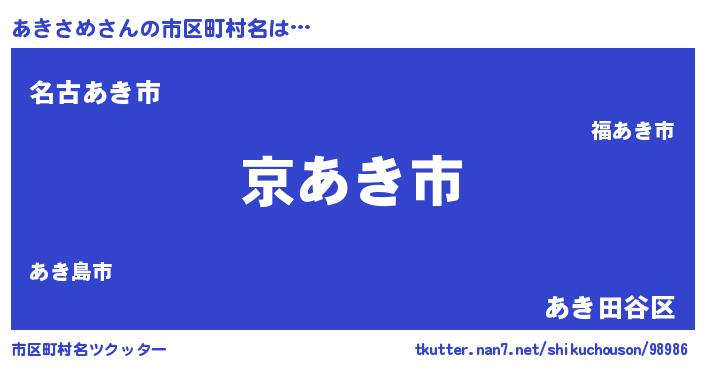 | 意味不明あだ名 | 『住所不定無職あきさめ(71歳)』 |