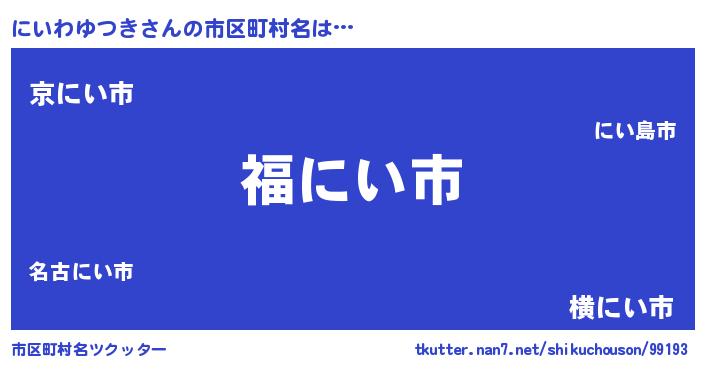 | 男性向けラノベタイトル風あだ名 | 『ニイワユツキスレイヤー』 |